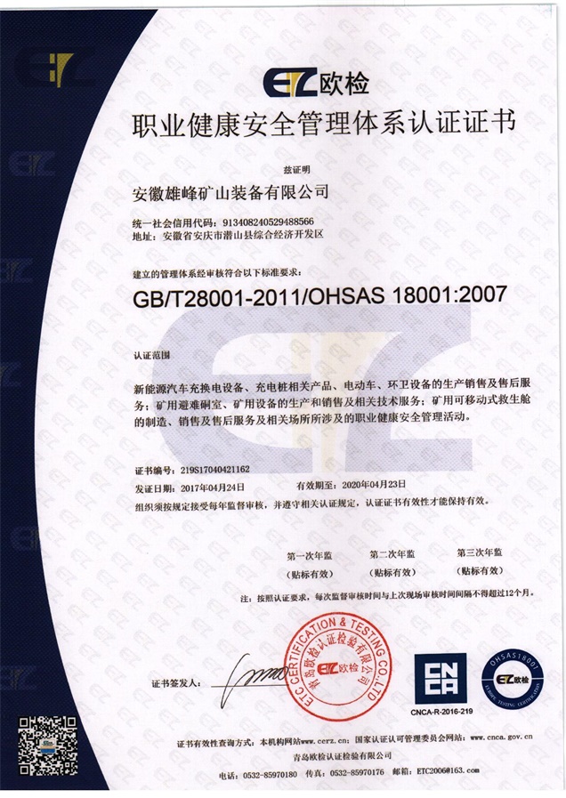 安徽天柱雄峰機(jī)電有限公司隸屬于安徽雄峰集團(tuán),公司座落在國家5A級(jí)風(fēng)景名勝區(qū)--天柱山腳下,是一家專業(yè)從事研發(fā)、生產(chǎn)、銷售礦山機(jī)械、礦用安全設(shè)備、機(jī)電設(shè)備及國際貿(mào)易的現(xiàn)代高新技術(shù)企業(yè)。公司被評(píng)定為國家科技部創(chuàng)新基金項(xiàng)目和國債項(xiàng)目重點(diǎn)支持單位、安徽省優(yōu)秀創(chuàng)新型企業(yè)。公司擁有省級(jí)企業(yè)技術(shù)中心和2個(gè)研究所,并與中國電子科技集團(tuán)合肥38研究所建立戰(zhàn)略合作關(guān)系。公司引用中國航天技術(shù),研發(fā)生產(chǎn)的礦用可移動(dòng)式救生艙和避難硐室可以在礦井發(fā)送事故后,為無法及時(shí)撤離的礦工提供安全的避難和等待救援的場所。該產(chǎn)品經(jīng)過模擬災(zāi)變環(huán)境下真人106小時(shí)的生存試驗(yàn)、高溫試驗(yàn)、爆炸試驗(yàn)等環(huán)節(jié)的檢測(cè),已取得國家礦用產(chǎn)品安全標(biāo)志證書,具備國際領(lǐng)先技術(shù);且已取得專利23項(xiàng),其中兩項(xiàng)發(fā)明專利(大型密閉門新型專利、逃生裝置新型專利)。公司秉承“誠信贏得市場,創(chuàng)新引領(lǐng)未來”的經(jīng)營理念,在“瞄準(zhǔn)高精尖,面向全球化”的發(fā)展戰(zhàn)略指導(dǎo)下,依托雄厚的科技力量和人才優(yōu)勢(shì),致力打造一流的礦用安全裝備,保障礦工生命安全,共建人類幸福家園!